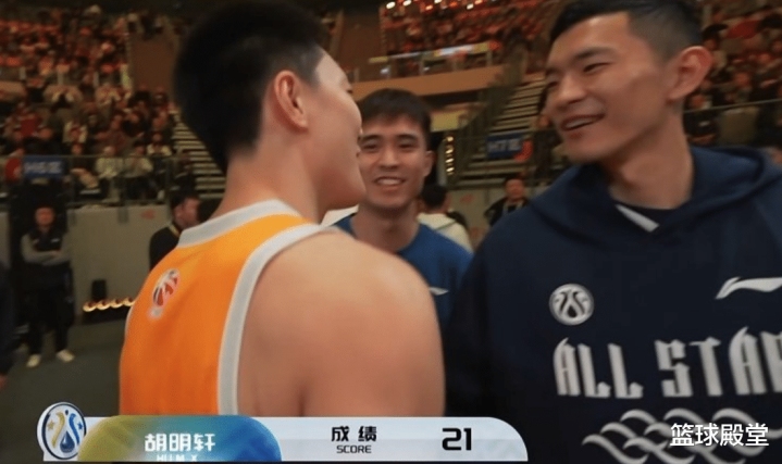 第二个胡明轩,前边两个点取得5分,弧顶五个全中,花球进了3个,底角进了5个,超远没进,最终取得了21分。